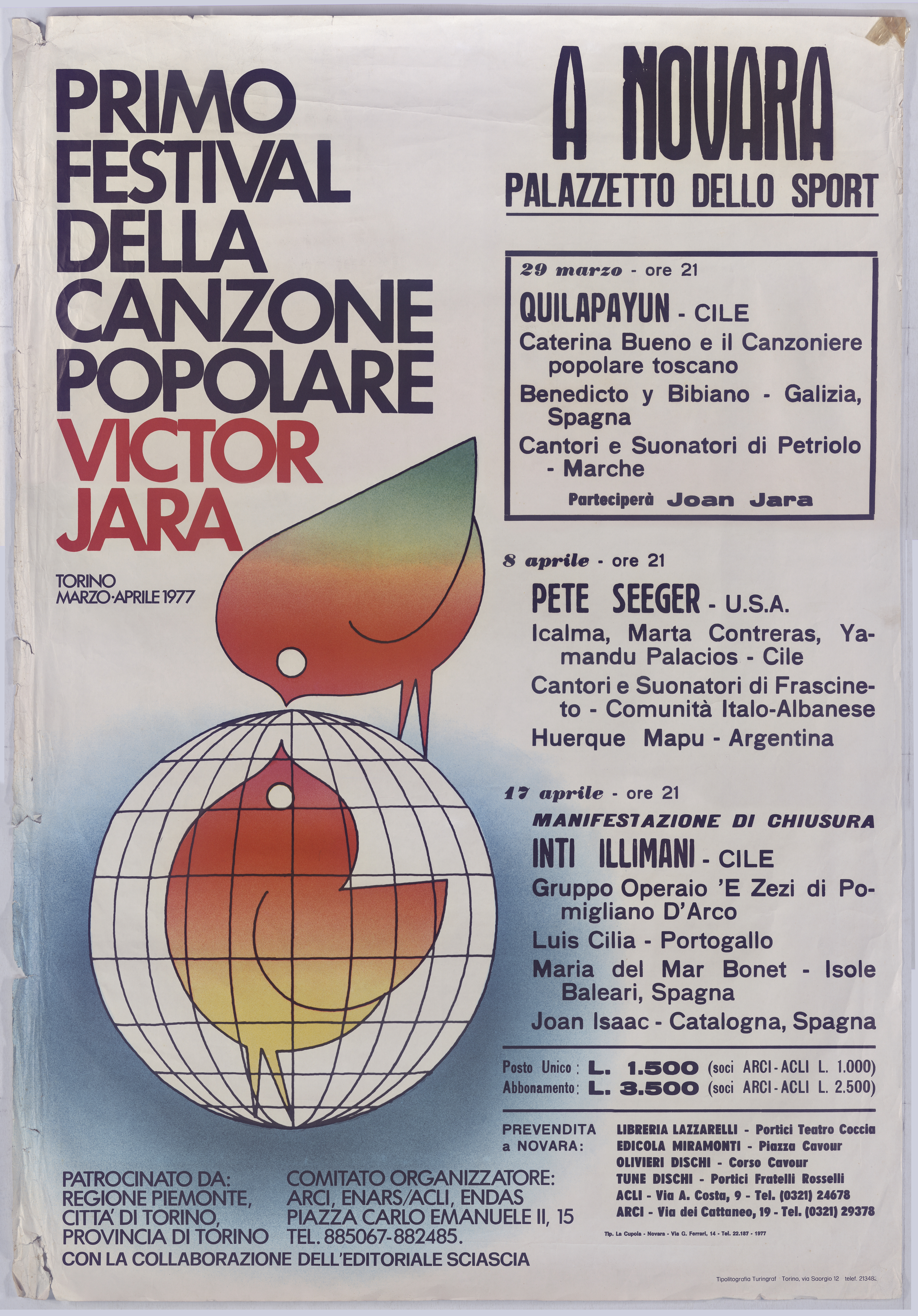 Primo festival della canzone popolare "Víctor Jara", Torino marzo-aprile 1977: A Novara, Palazzetto dello Sport