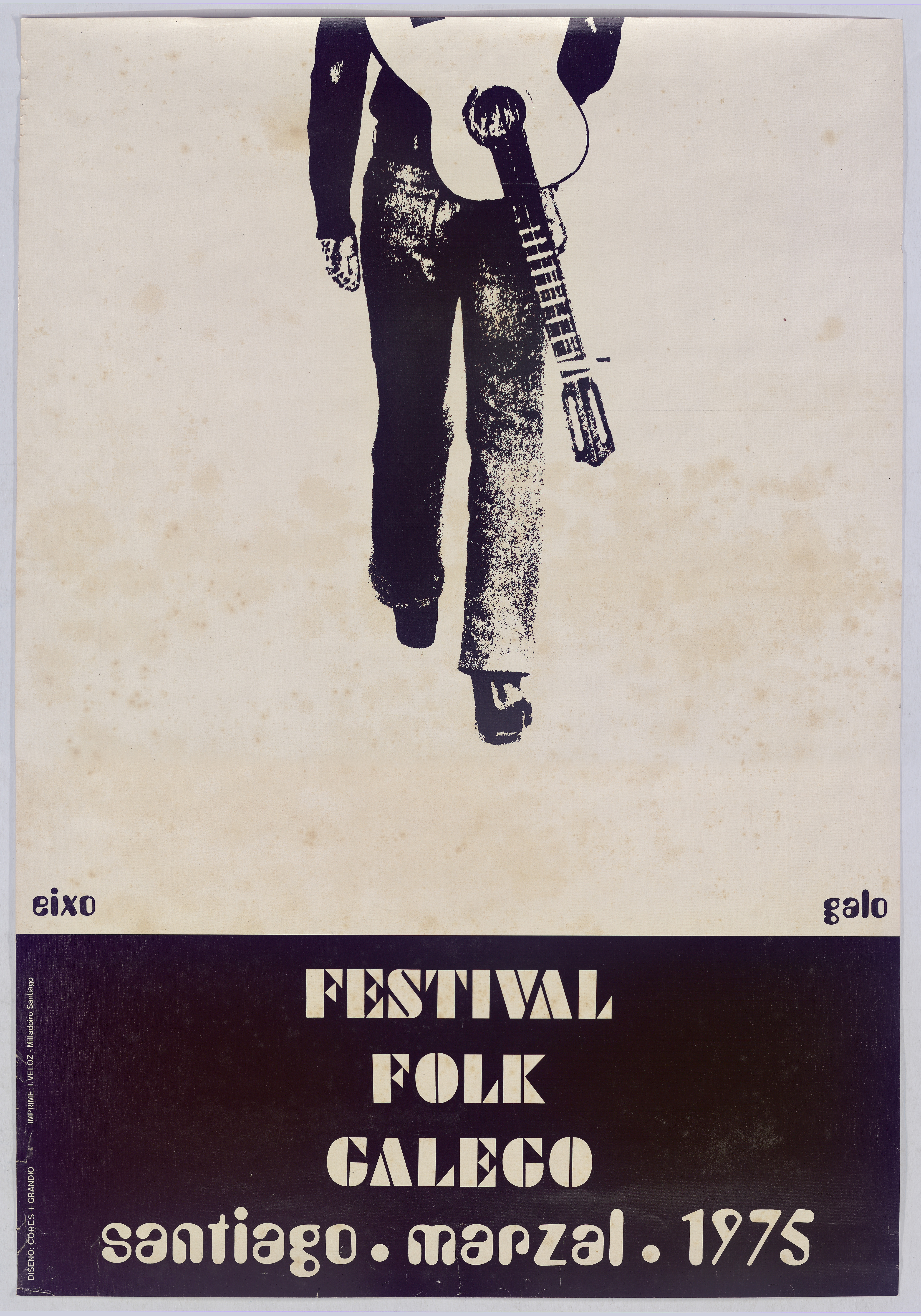 Cartel que anuncia o Festival Folk galego, organizado polo Eixo e O Galo e que tivo lugar en marzo de 1975 en Santiago de Compostela
