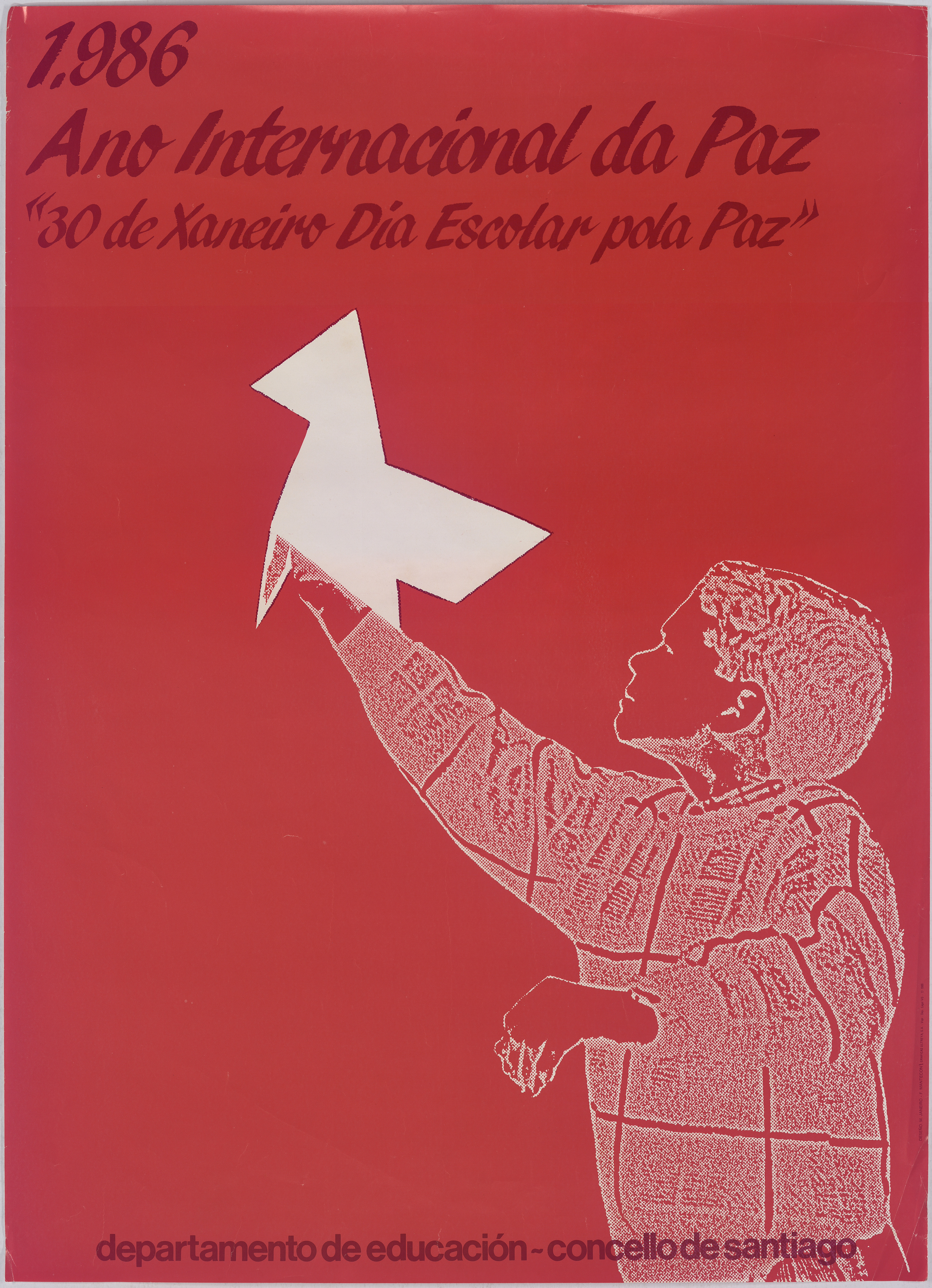 Cartel do "Día Internacional pola Paz" de 1986, editado polo Departamento de Educación do Concello de Santiago
