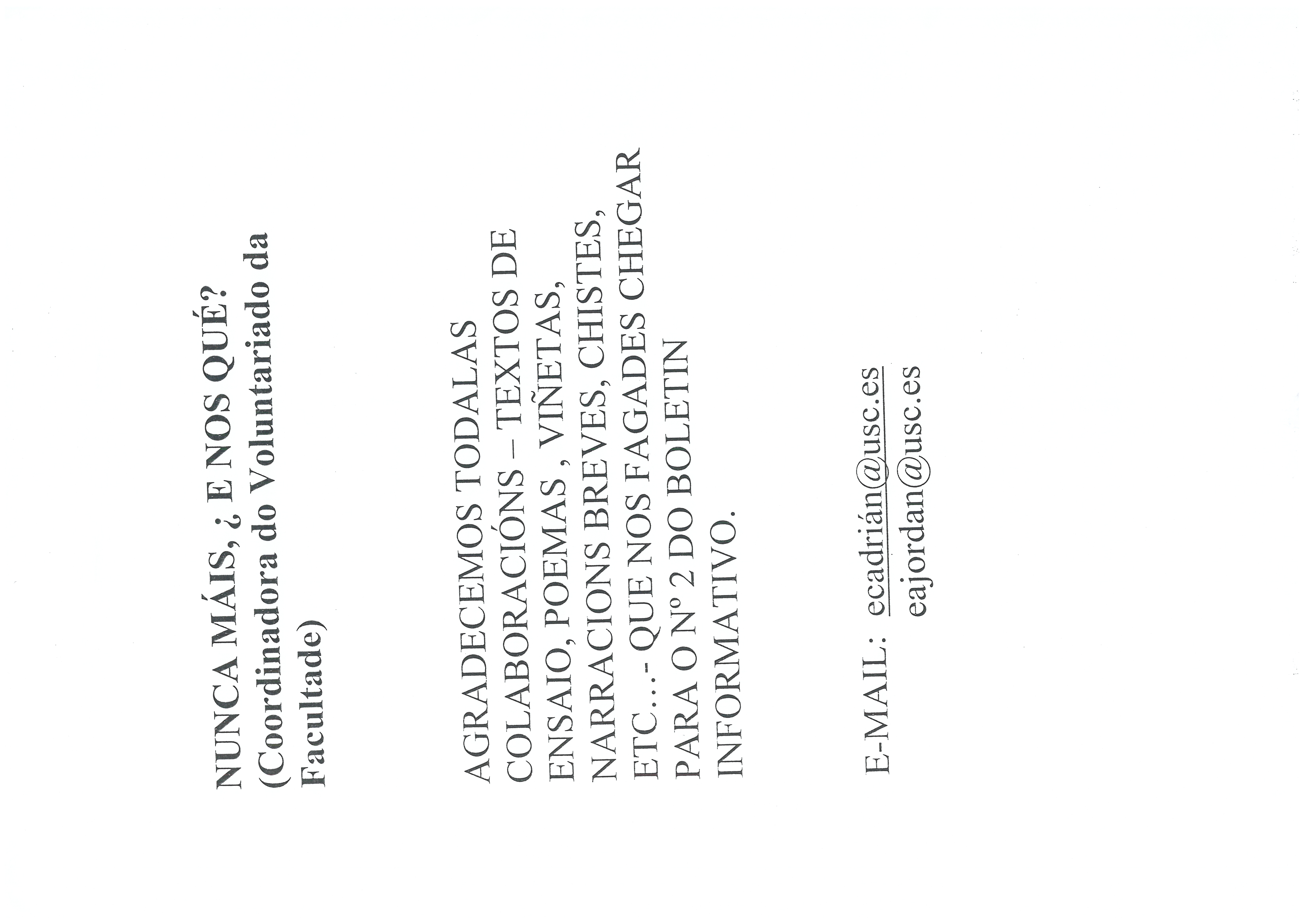 Nunca Máis, ¿e nós qué? (Coordinadora do Voluntariado da Facultade) : agradecemos tódalas colaboracións ... para o nº 2 do Boletín informativo