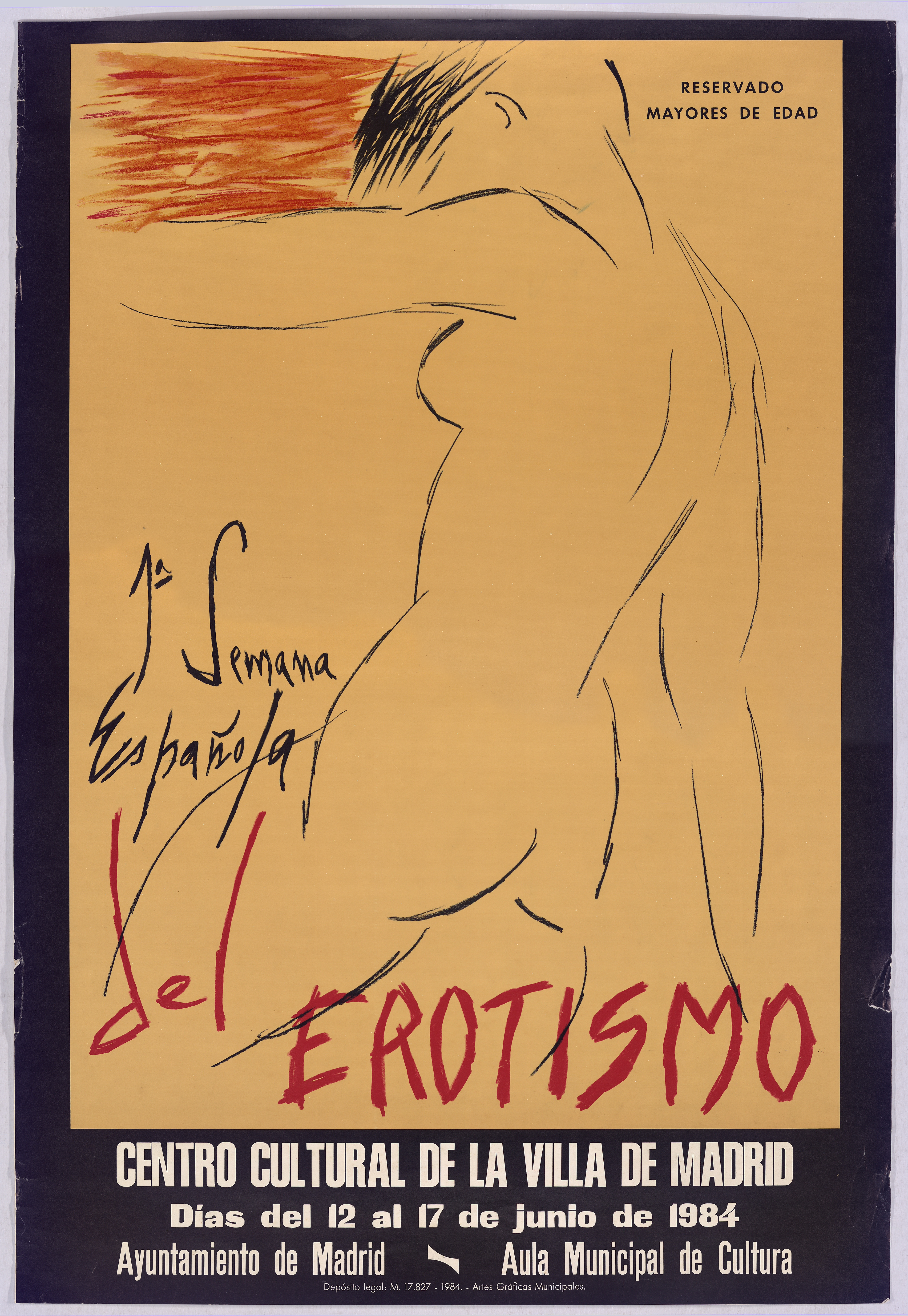 Cartel da 1ª Semana Española do Erotismo celebrado no Centro Cultural da vila de Madrid en xuño de 1984