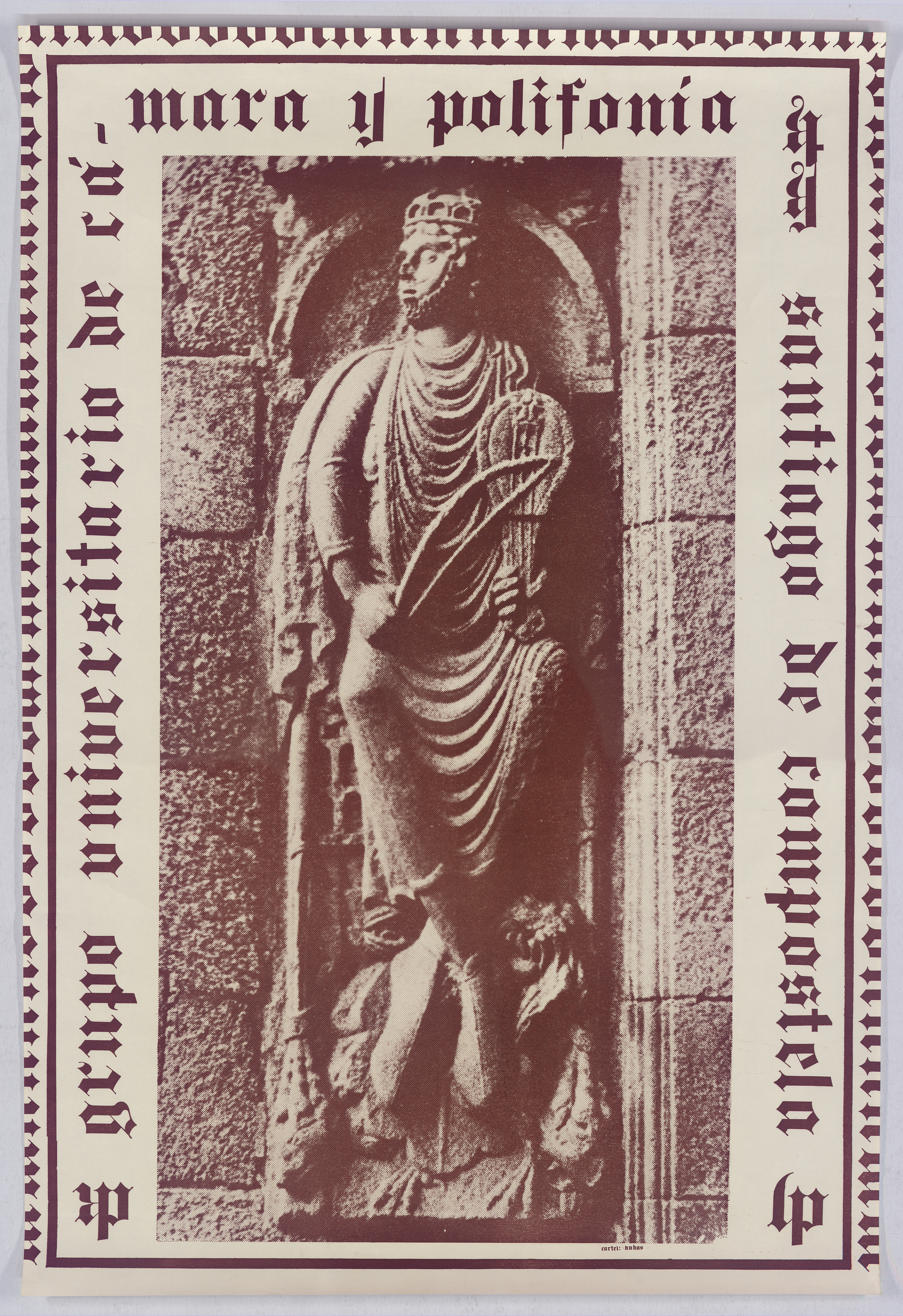 | dc.description.abstract | Cartel do Grupo Universitario de Cámara e Polifonía de Santiago de Compostela. Imaxe da escultura do Rei David como músico que se atopa na Catedral compostelana | es_ES |