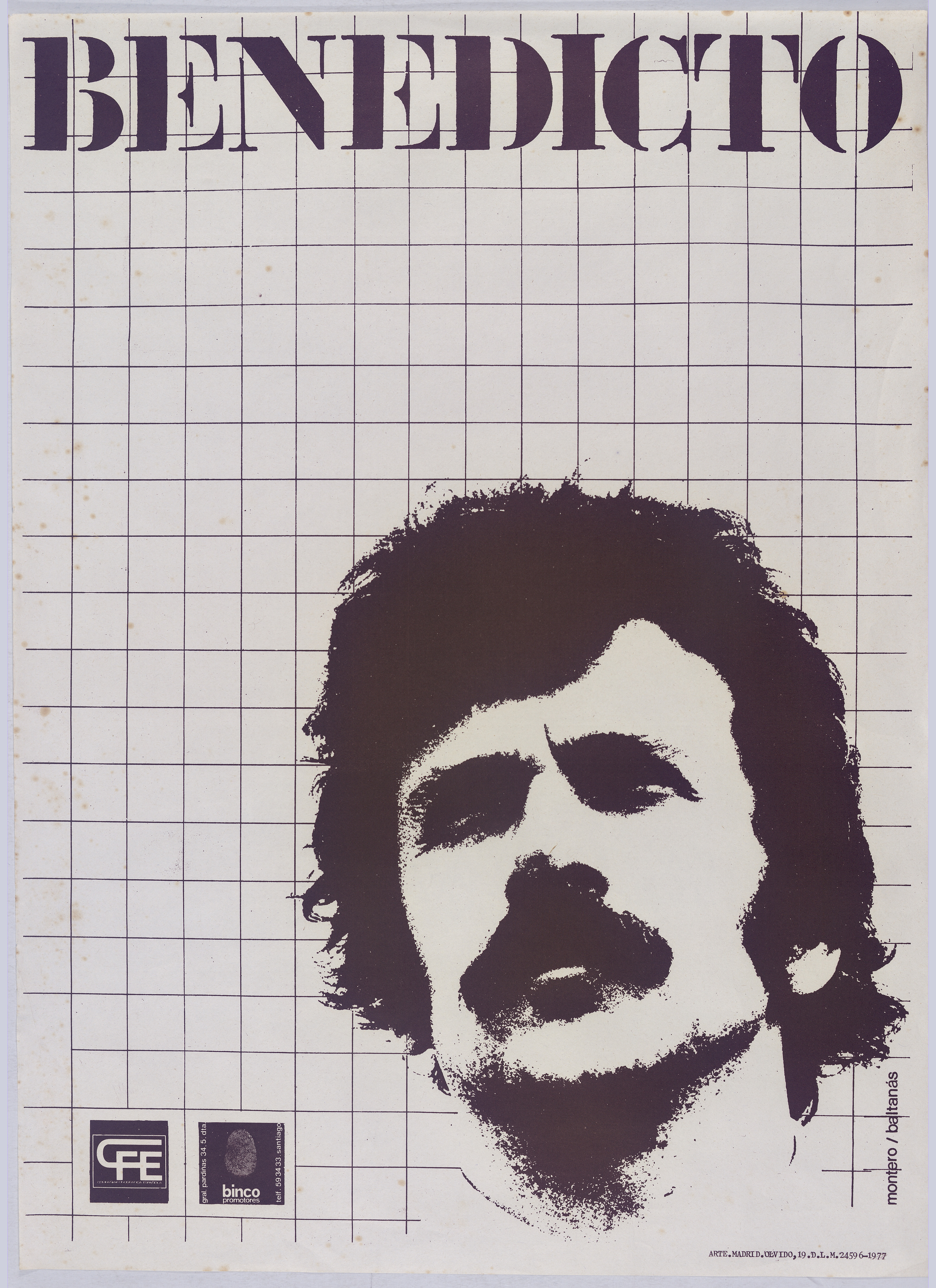 Cartel co retrato de Benedicto realizado por Pepe Baltanás e Montero e editado por CFE E Binco Promotores, S.L. en 1977