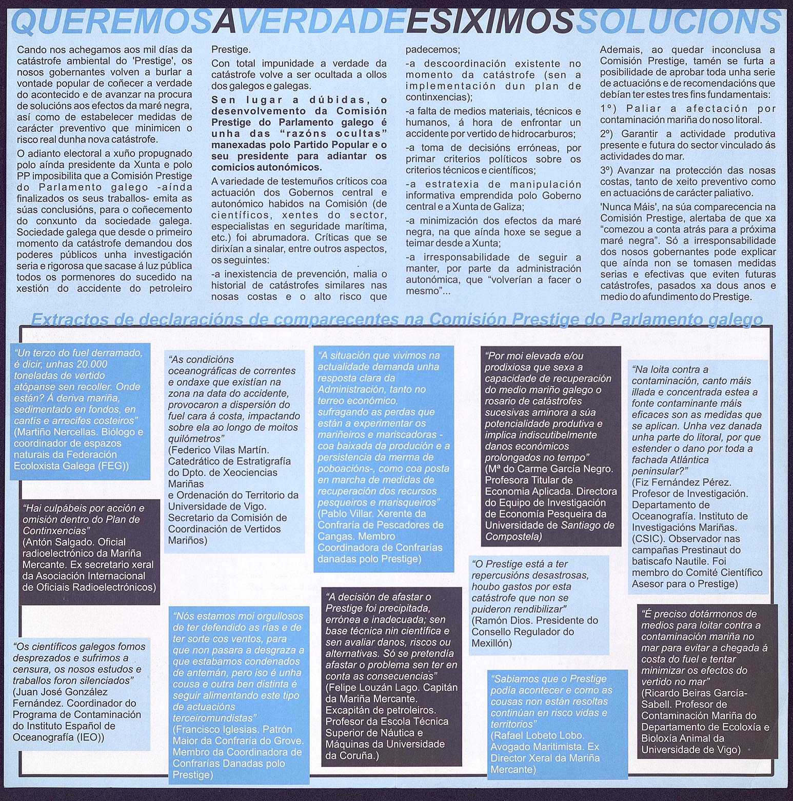 Queremos a verdade, esiximos solucións [Material gráfico]