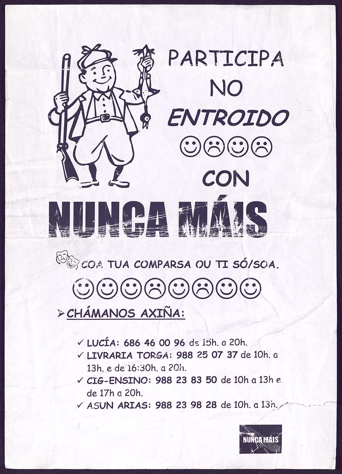 Participa no Entroido con Nunca Máis coa túa comparsa ou ti só/soa [Material gráfico]