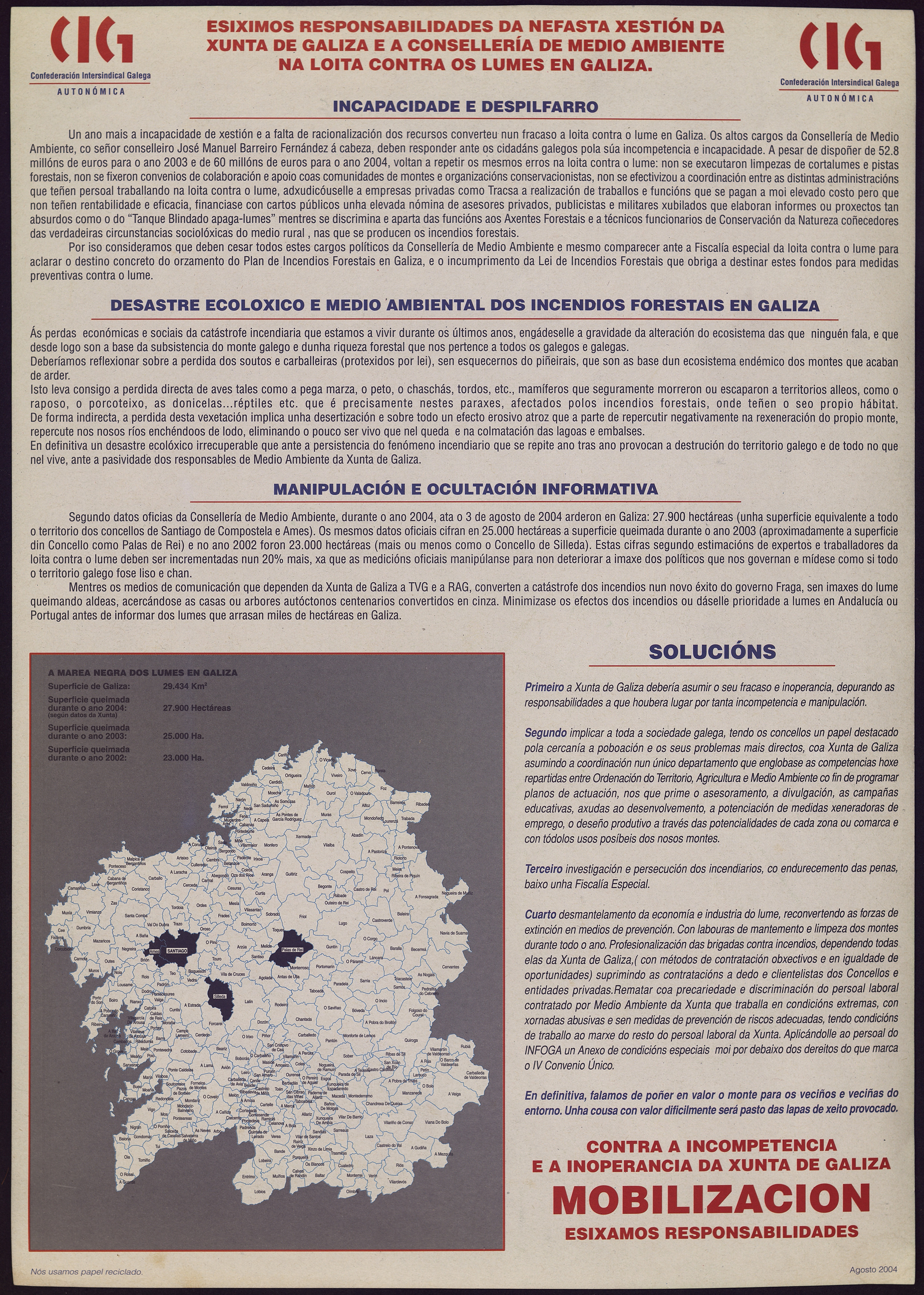 Lumes Nunca Máis : esiximos responsabilidades na nefasta xestión da Xunta de Galiza e a Consellería de Medio Ambiente na loita contra os lumes en Galiza
