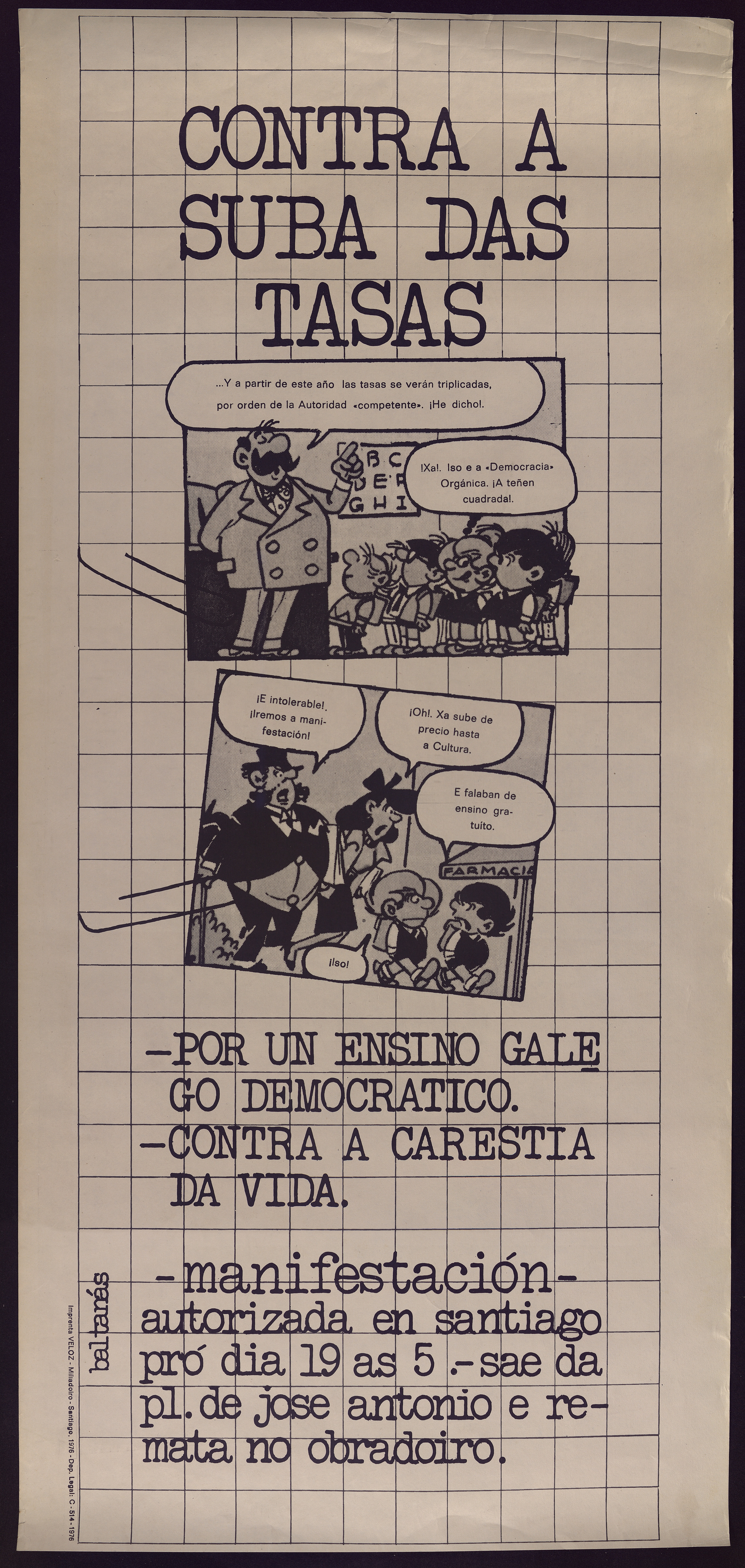 Cartel que convoca a manifestación contra a suba das taxas no ensino galego e contra a carestía da vida